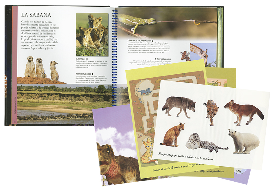 Encuadernación:  Cartoné plastif. con relieve y holograma, int.con espiral,póster,escenario,pegat.y piezas precortada