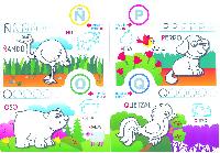 Encuadernación:  Cartulina plastificada brillo y troquelada, interior con pegatinas