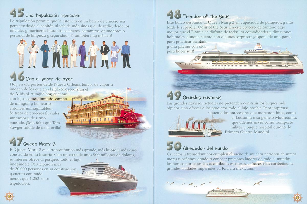 Sumérgete en el apasionante mundo de los barcos y puertos con este libro, que te propone un viaje a través de la historia de la navegación. Aprende todo sobre las primeras embarcaciones, los enormes y pesados cargueros, las naves más veloces o el trabajo en un puerto. Un sinfín de datos y curiosidades, acompañados de numerosas y descriptivas imágenes.