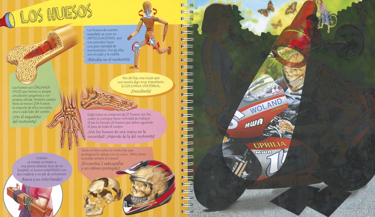 Encuadernación:  Cartoné plastif. mate y brillo,interior de cartón con espiral,transparencias y linterna de cartulina