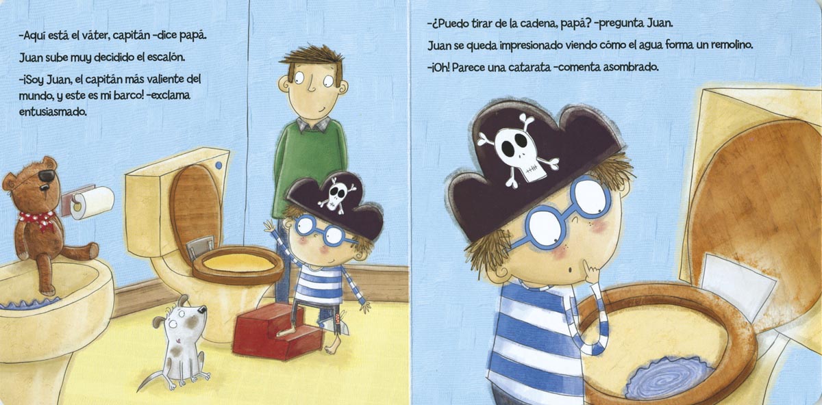 El capitán Juan quiere ser mayor y se ha propuesto ir al baño solo. El capitán Juan quiere ser mayor y se ha propuesto ir al baño solo. Acompáñale y aprende todo lo que hay que hacer, ¡y no olvides al final lavarte las manos con jabón!