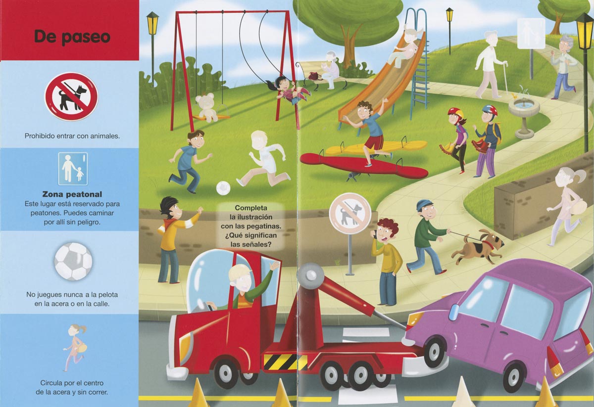 Una estupenda colecci贸n donde podr谩s aprender de forma sencilla las normas b谩sicas de circulaci贸n. Conocer谩s algunas de las se帽ales de tr谩fico m谩s importantes y te divertir谩s colocando las pegatinas en el lugar que les corresponde.
