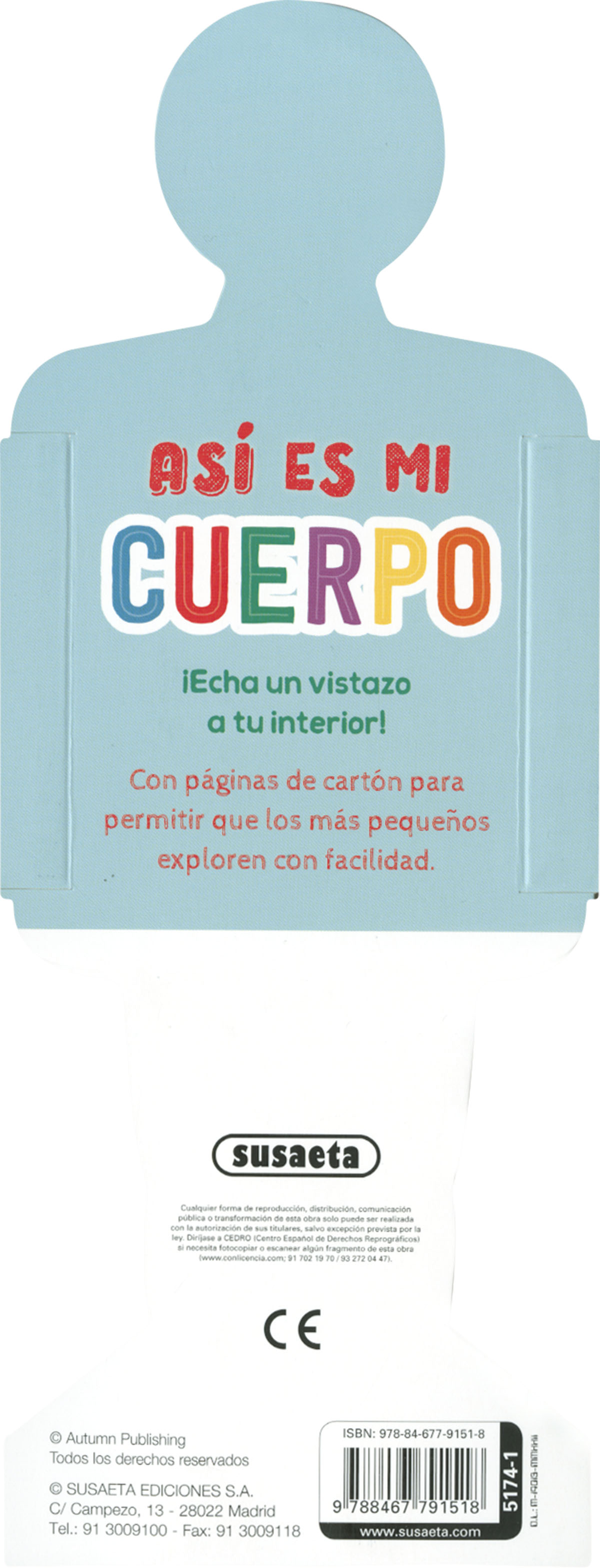 Encuadernación:  Cartón plastificado mate y troquelado con forma de cuerpo humano