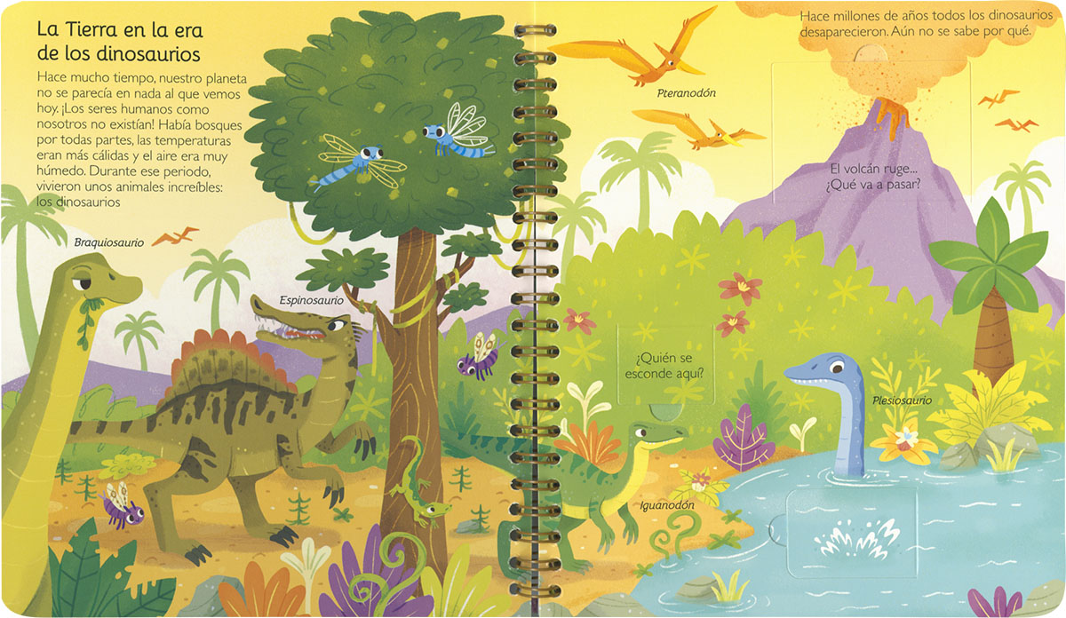 Descubre cómo son los dinosaurios con este libro de páginas de cartón. Sus ilustraciones y divertidas solapas atraparán la atención de los niños más curiosos y convertirán la lectura en una experiencia visual e interactiva.