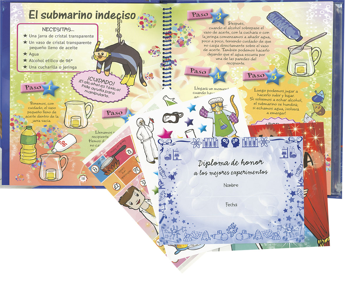 Encuadernación:  holograma,int.con espiral,póster,pegat.,diploma y tablero juego