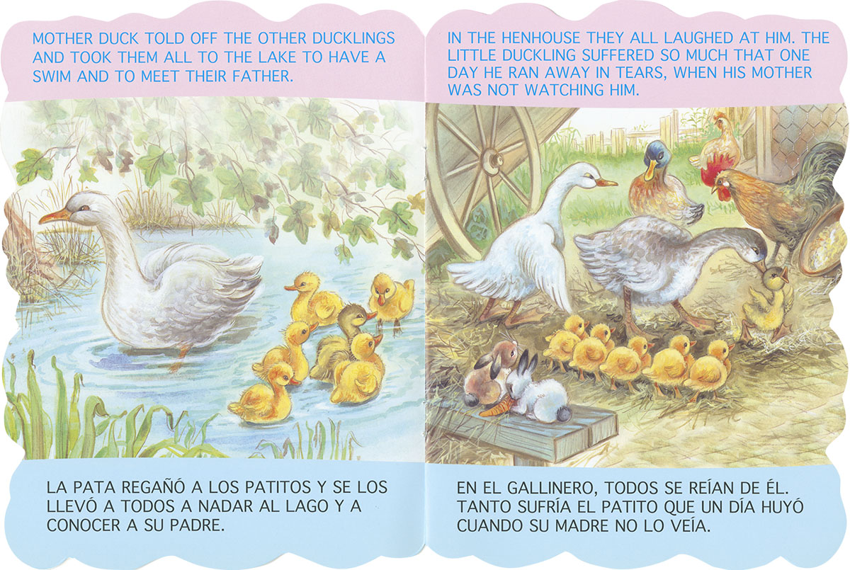 El cuento de El patito feo, con unas preciosas ilustraciones a todo color y letra mayúscula, en edición bilingüe para aquellos niños que quieren hablar el inglés y el español igual de bien.