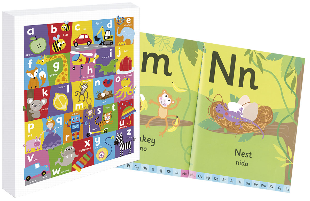 Aprende el abecedario en inglés con este libro y el original lienzo que incluye, con el que podrás decorar tu habitación a la vez que te ayuda a recordar las letras del abacedario.