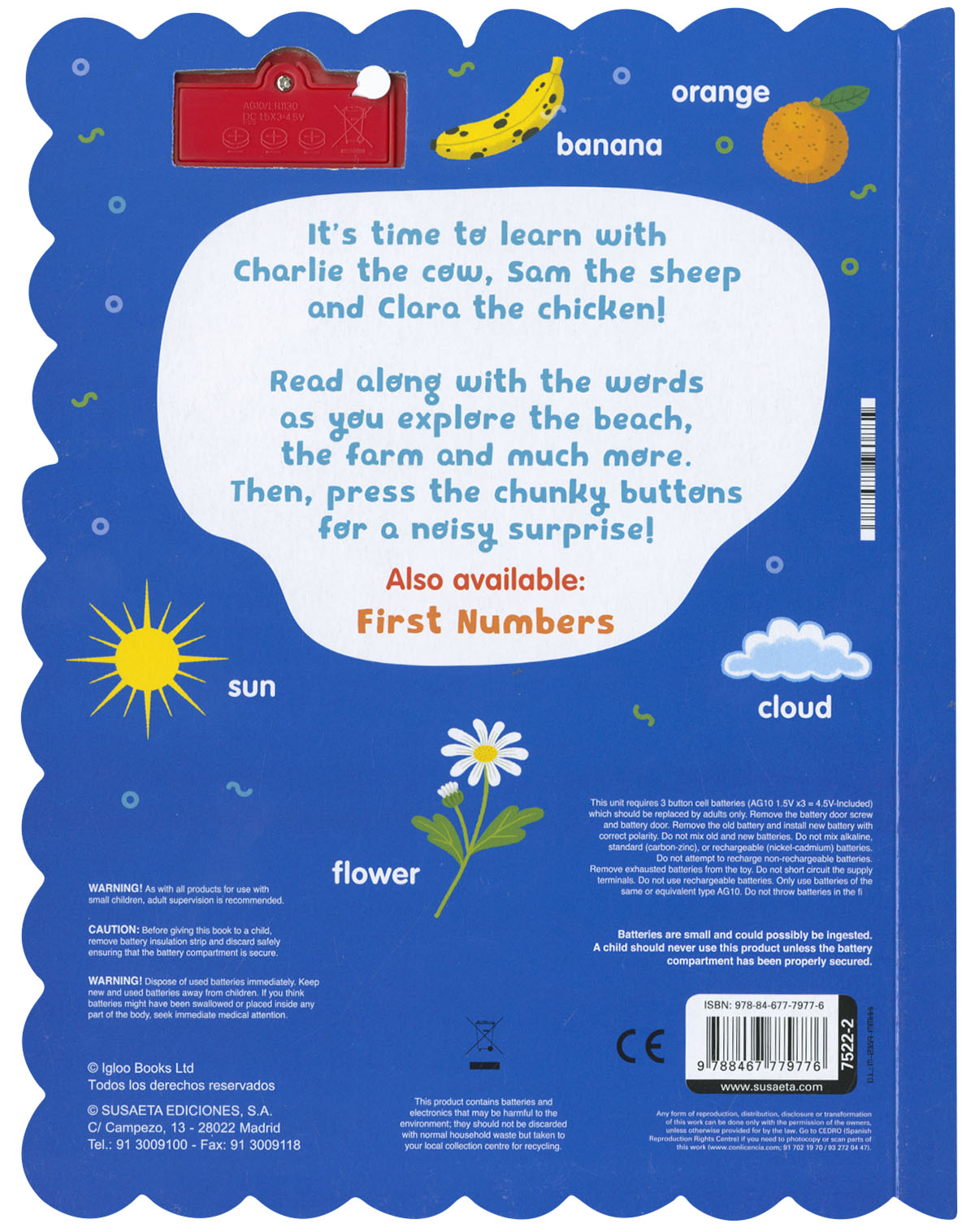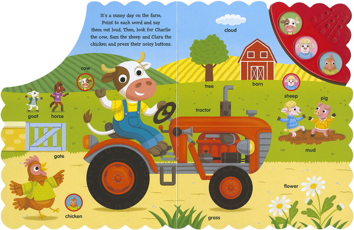 It's time to learn with Charlie the cow, Sam the sheep and Clara the chicken! Read along with the words as you explore the beach, the farm and much more. Then, press the chunky buttons for a noisy surprise!