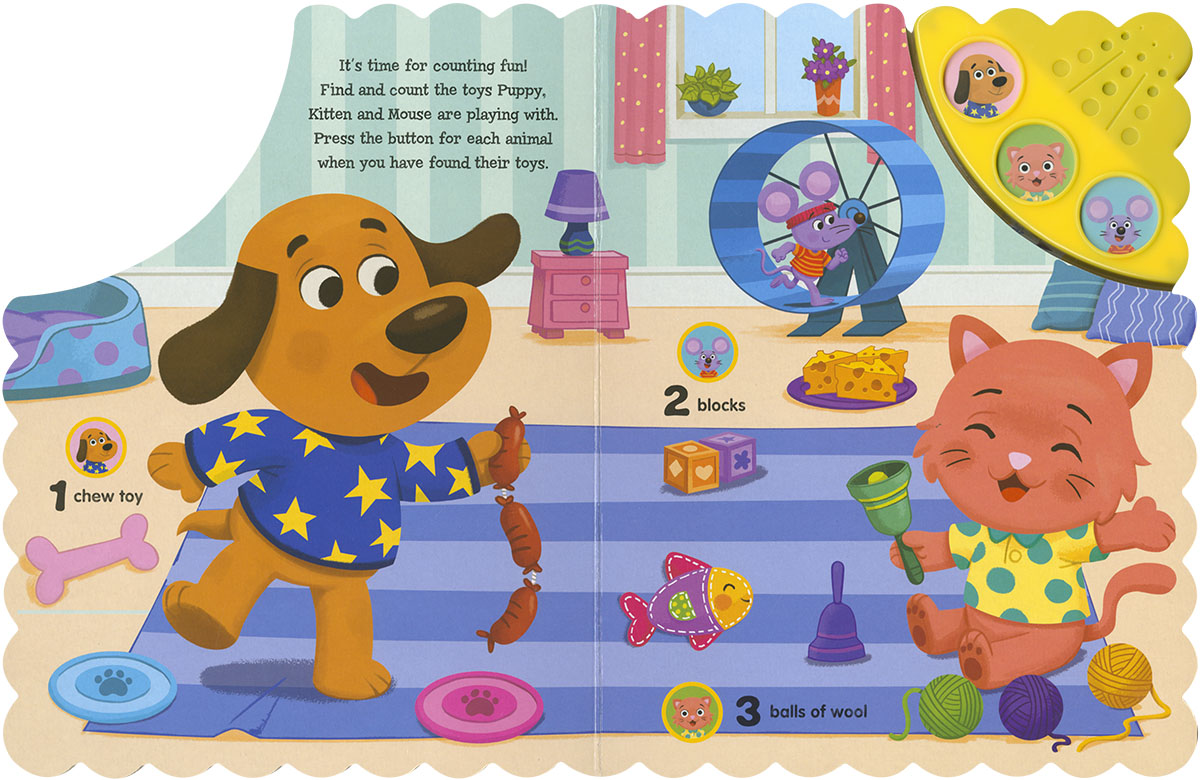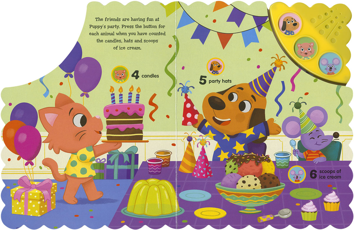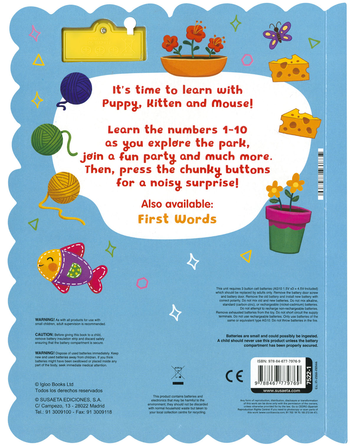 It's time to learn with Puppy, Kitten and Mouse! Learn the numbers 1-10 as you explore the park, join a fun party and much more. Then, press the chunky buttons for a noisy surprise!