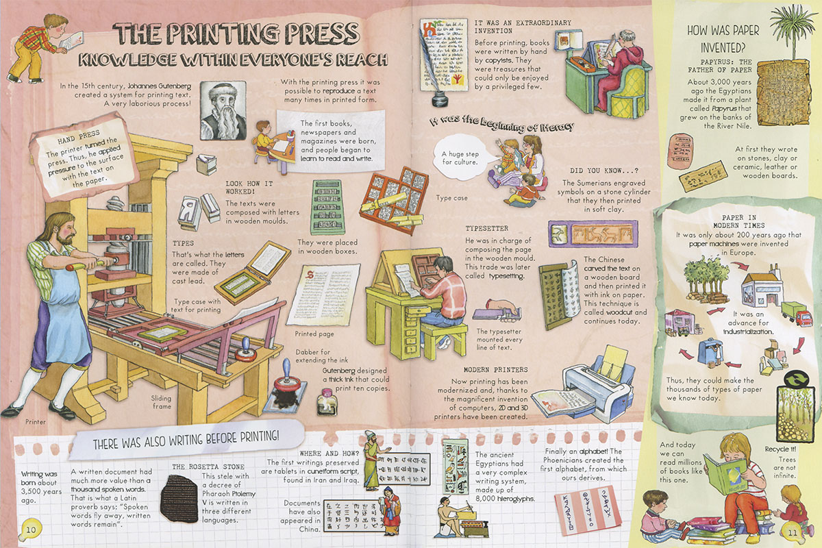 Turning on the light, using a lift, travelling by car or plane, speaking on the phone, putting on the washing machine or the TV ... are all actions we do so naturally that it seems to us they have always existed. Take a look inside this exciting book and you'll be amazed at the origin of many inventions and discoveries that you may not have ever thought about: the wheel, fire, the printing press, electricity, vaccines, cells, transport ... Are you ready? Then, here we go!