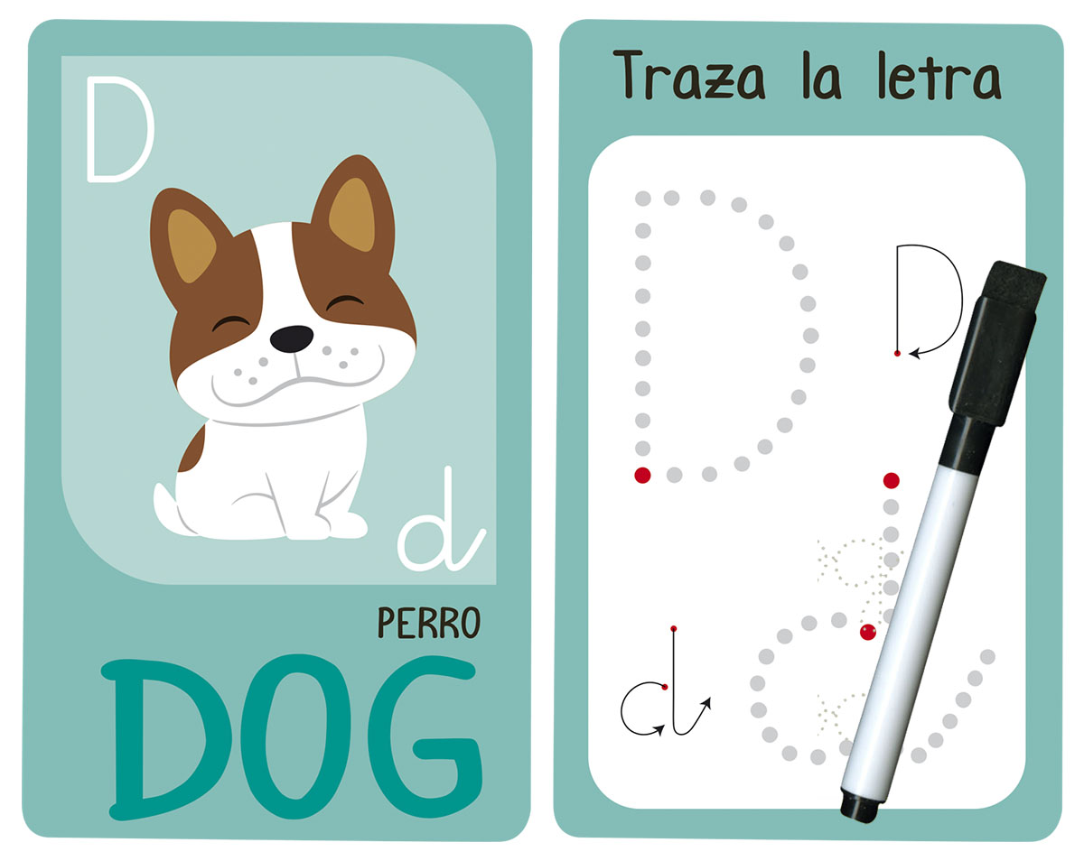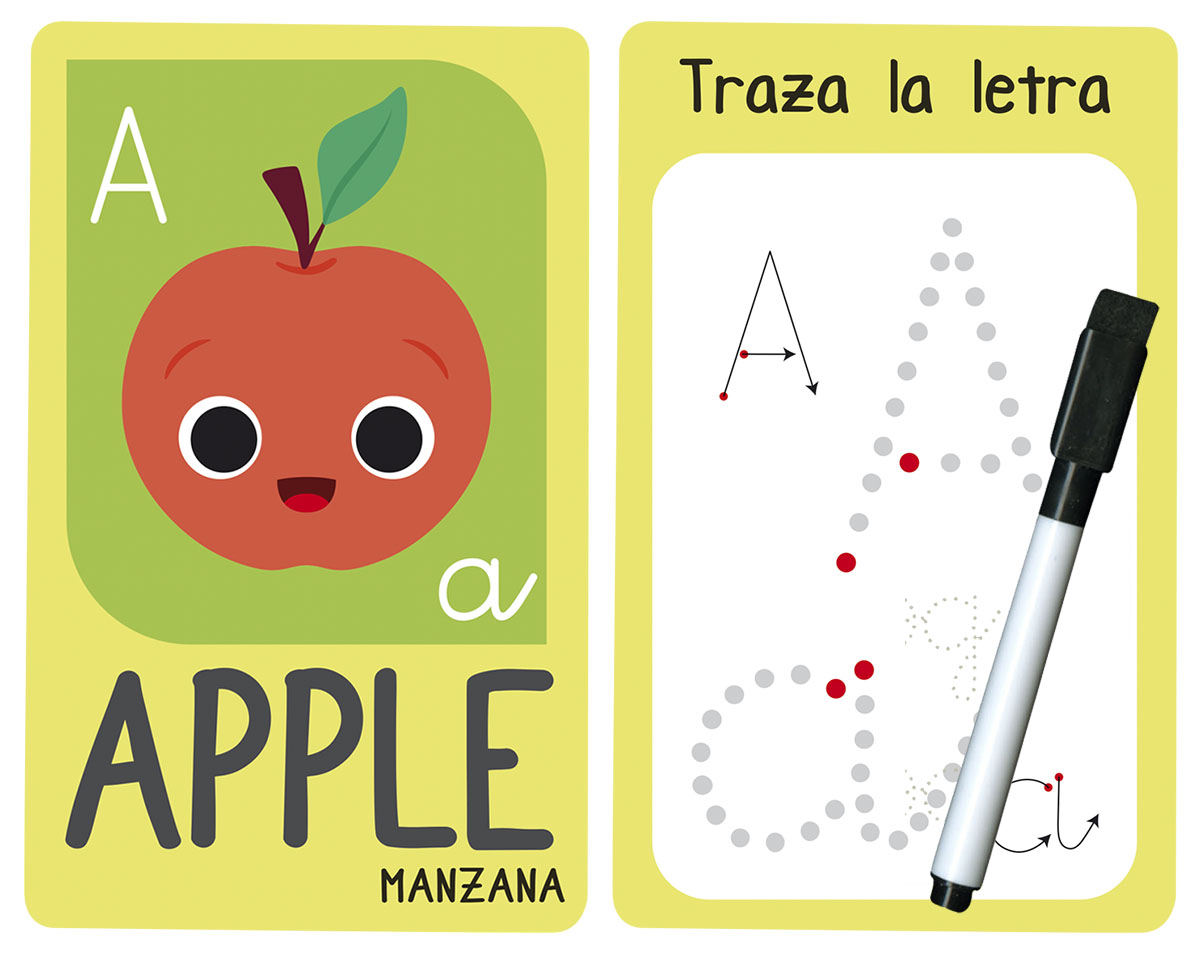 Aprende de forma fácil y divertida las letras del abecedario y practica su escritura. En esta caja, encontrarás 30 tarjetas con un montón de dibujos diferentes y su nombre en inglés y español, además de una zona donde practicar la escritura de cada letra, para que te diviertas mientras aprendes.