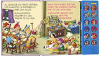 Encuadernación:  cartón y 12 pulsadores que cuentan el cuento 2 idiomas