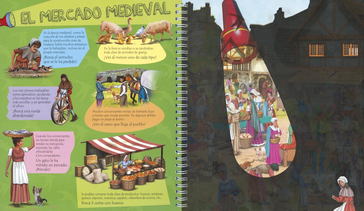 Recorre las imágenes con la linterna de cartón que incluye el libro y descubre todo lo que la oscuridad esconde. ¡Aprenderás un montón de curiosidades sobre la vida en la Edad Media y te divertirás!
