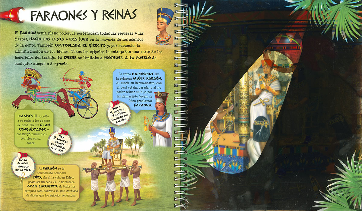 Encuadernación:  Cartoné plastif. mate y brillo,interior de cartón con espiral,transparencias y linterna de cartulina