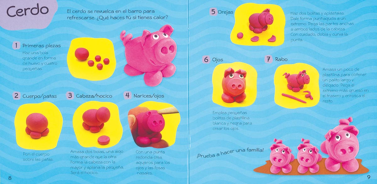 Crea la figura que quieras, desde leones a mariposas, con las instrucciones de esta caja, los utensilios y la blanda y maleable plastilina de 10 colores distintos que incluye esta caja.