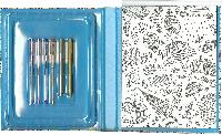 Encuadernación:  bolígrafos de purpurina, 2 metálicos y bloc de láminas