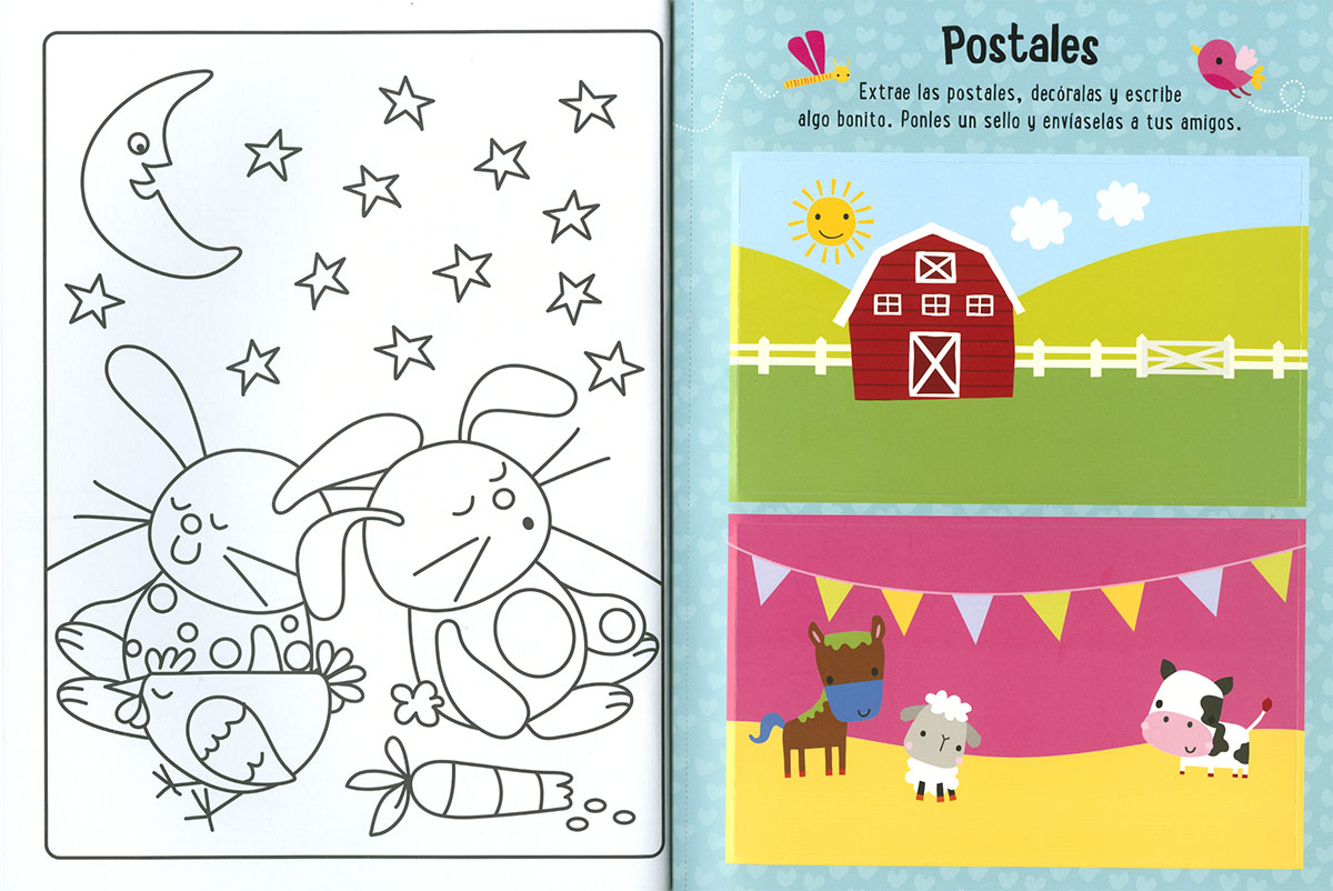 Encuadernación:  Cartulina plastificada brillo con estampación, interior con pegatinas y piezas extraíbles