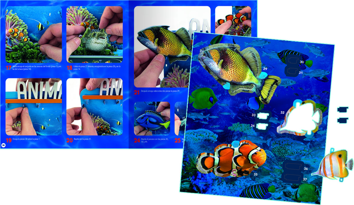 Encuadernación:  Cartoné con cubierta plastificada mate y brillo, contiene 57 piezas para construir diorama