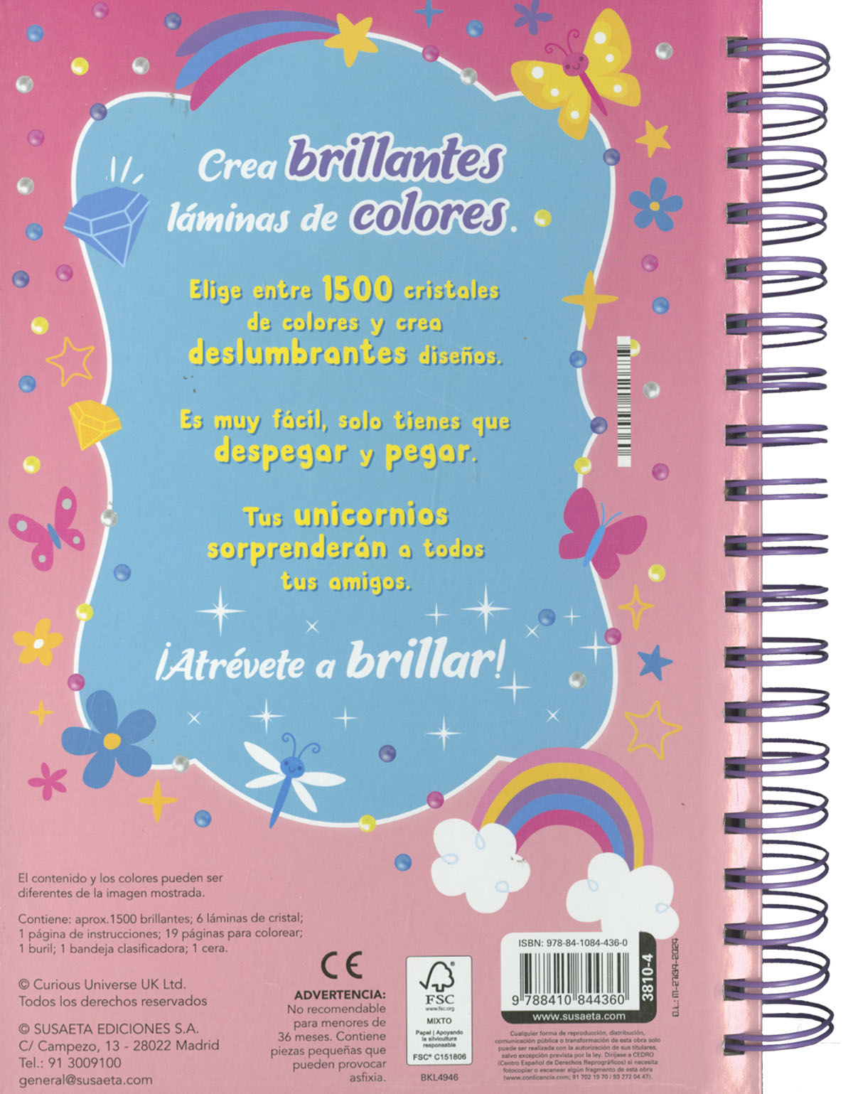 Crea brillantes láminas de mágicos unicornios con este completo kit. Elige entre 1500 cristales de colores y crea deslumbrantes diseños. Solo tienes que despegar y pegar. ¡Muy sencillo!