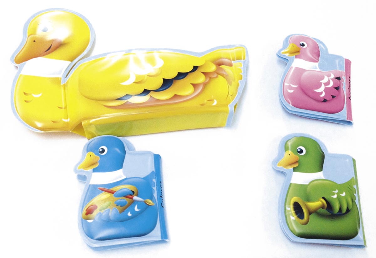 Aprender los colores e imitar los sonidos y movimientos de tus animales favoritos es muy sencillo si vas junto a mamá pato y sus patitos. ¡Disfruta de este divertido libro de baño!