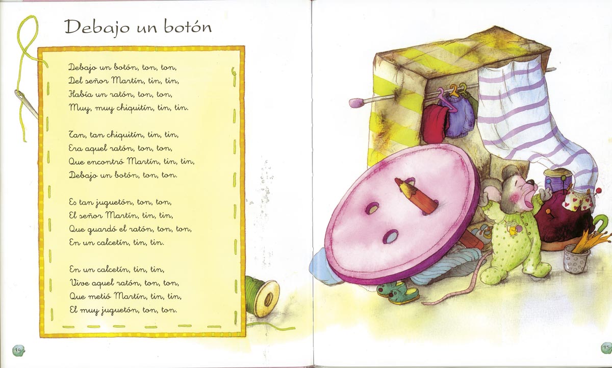 En este precioso álbum, lleno de bellísimas ilustraciones, vienen recogidas muchas de las canciones populares infantiles y poesías más conocidas del folklore español para cantar y contar a nuestros bebés. Además, contiene un CD para disfrutar de la música y la lectura al mismo tiempo.