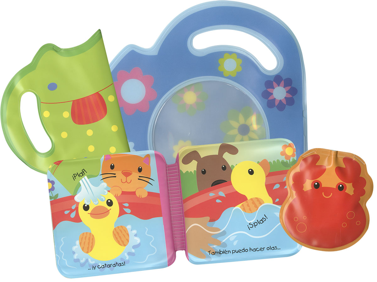 Pasa un día genial jugando con el agua con esta fantástica regadera, un pez para echar agua y un cangrejo que acompañan a este simpático libro de baño.