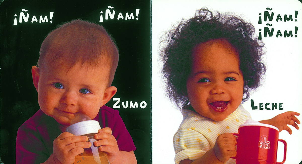 La primera dentición comienza a partir de los seis meses de vida, por eso este simpático libro para bebés glotones incluye un precioso mordedor. ¡A comer! ¡Ñam! ¡Ñam!