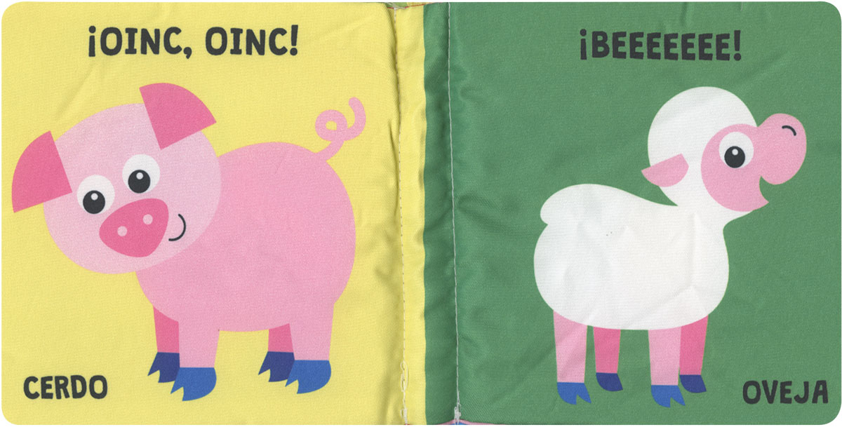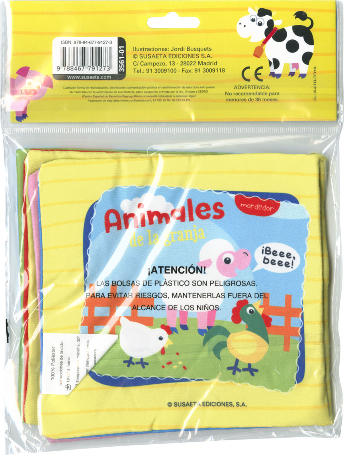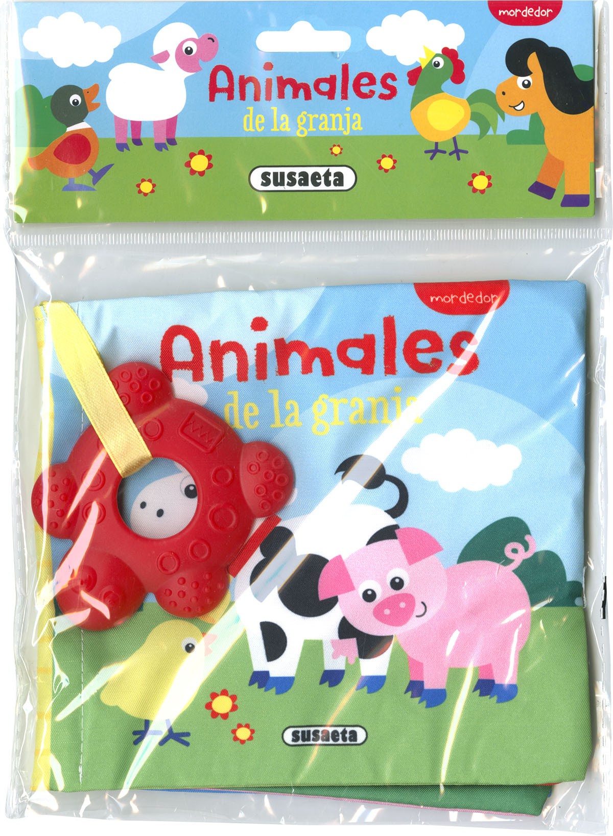 Disfruta de este simpático libro mordedor, un blandito y suave libro de tela con tus animales de granja preferidos que podrás llevar contigo a todas partes.