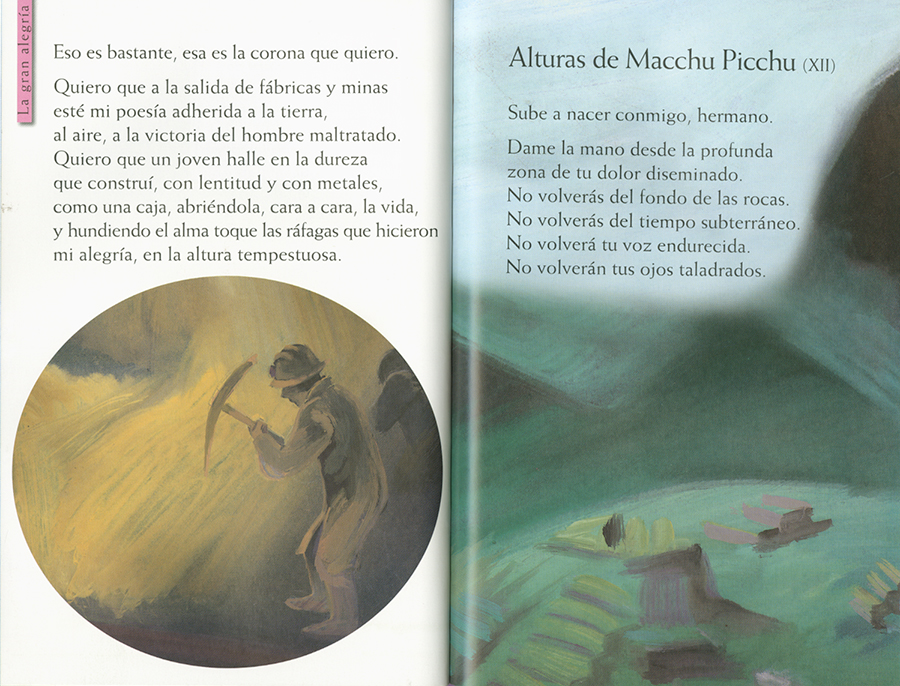 Este magnífico poeta, Premio Nacional de Literatura en su país, Chile, en 1945, y Premio Nobel de Literatura en 1971, renovó con su extensa obra el lenguaje poético del siglo XX. Y a través de su poesía podemos descubrirlo a él: sus amores, su soledad, su dolor en este mundo injusto, su identificación con el pueblo humilde y trabajador cuyos derechos defendió, su lucha por la paz, su esperanza en un mundo mejor.