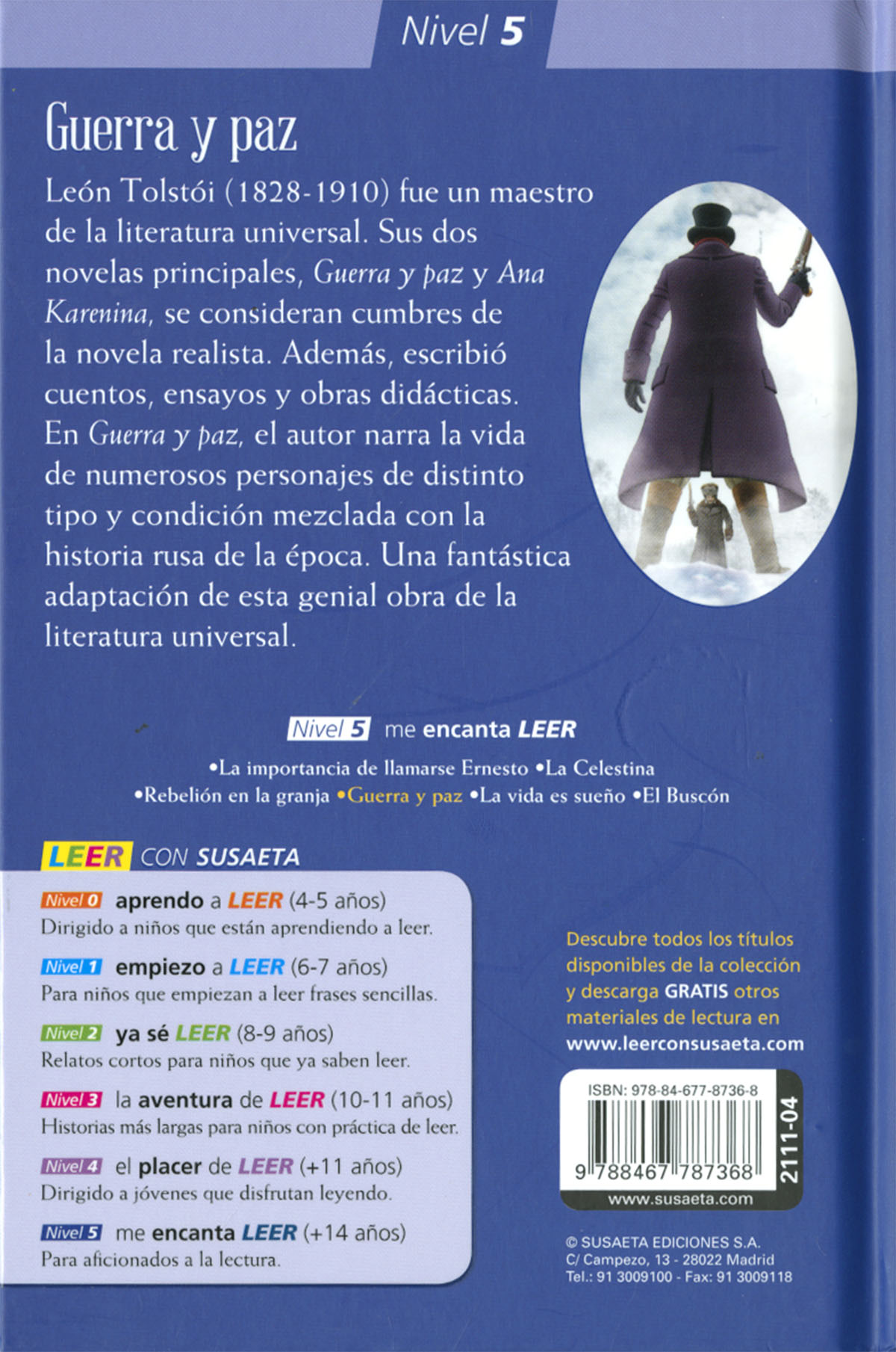 León Tolstói (1828-1910) fue un maestro de la literatura universal. Sus dos novelas principales, Guerra y paz y Anna Karenina, se consideran cumbres de la novela realista. Además, escribió cuentos, ensayos y obras didácticas. En Guerra y paz, el autor narra la vida de numerosos personajes de distinto tipo y condición mezclada con la historia rusa de la época. Una fantástica adaptación de esta genial obra de la literatura universal.