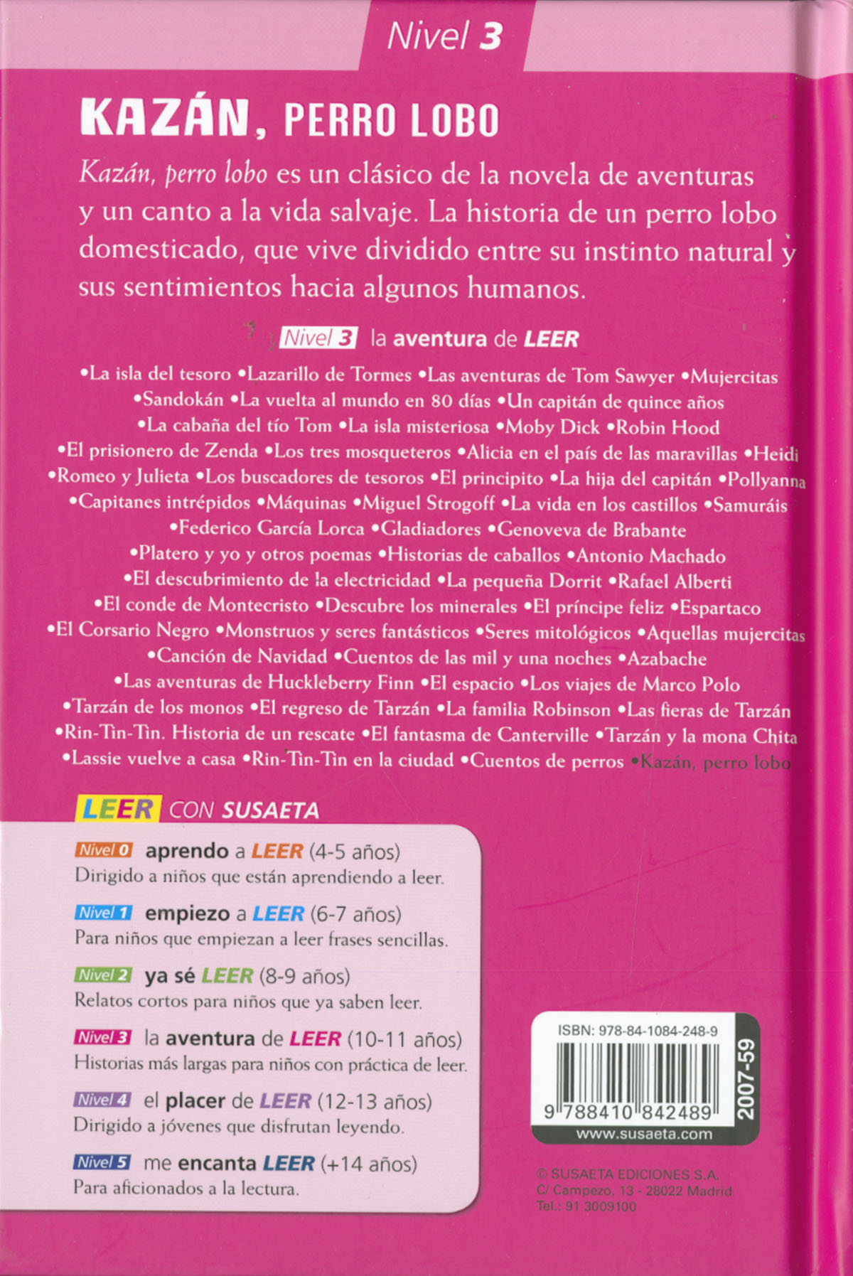 Kazán, perro lobo es un clásico de la novela de aventuras y un canto a la vida salvaje. La historia de un perro lobo domesticado que vive dividido entre su instinto natural y sus sentimientos hacia algunos humanos.