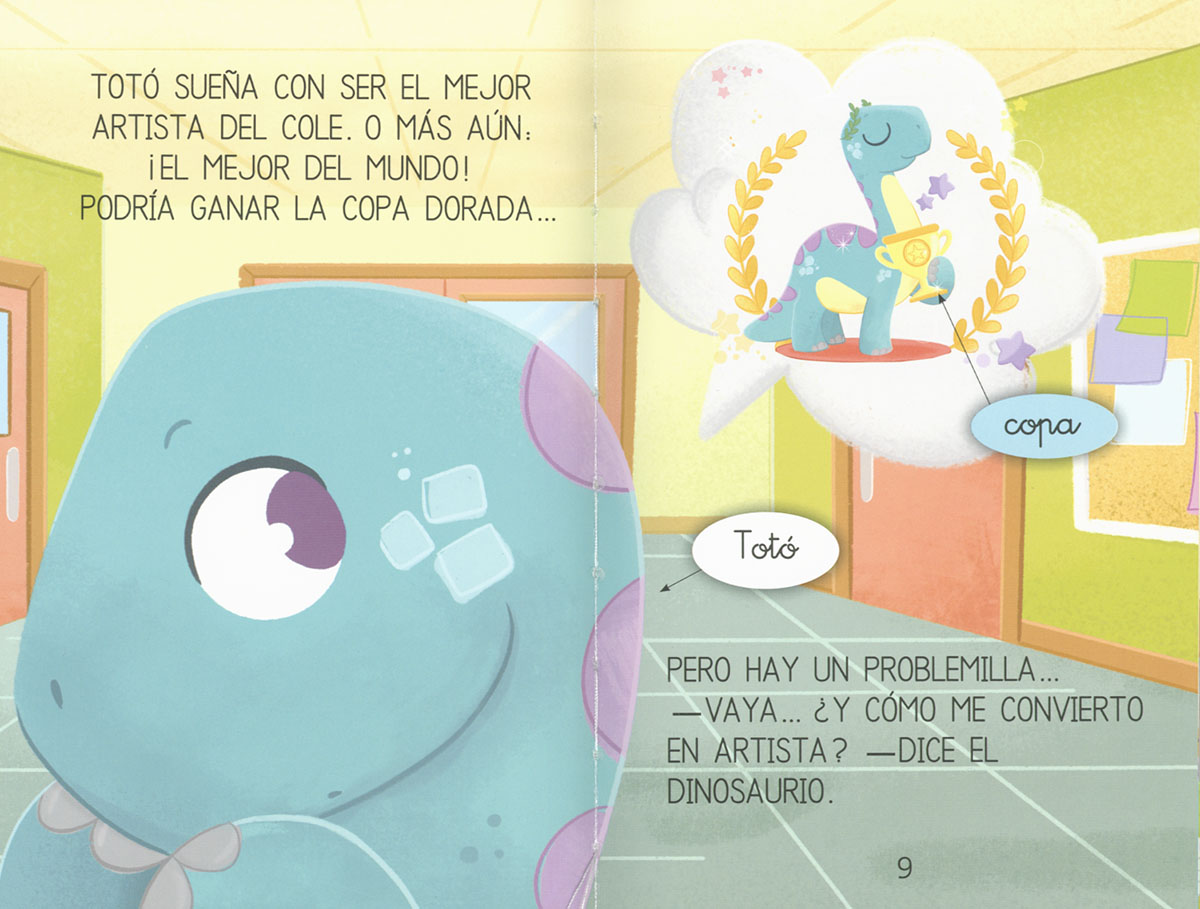 En el colegio del dinosaurio es el día del artista, un día en el que todos pueden destacar con su arte: cantar, dibujar, bailar, rapear... El dinosaurio desea ser el mejor artista del mundo mundial y ganar la copa dorada, pero no tiene ni idea de cómo sacar al artista que lleva dentro... ¿Lo conseguirá?