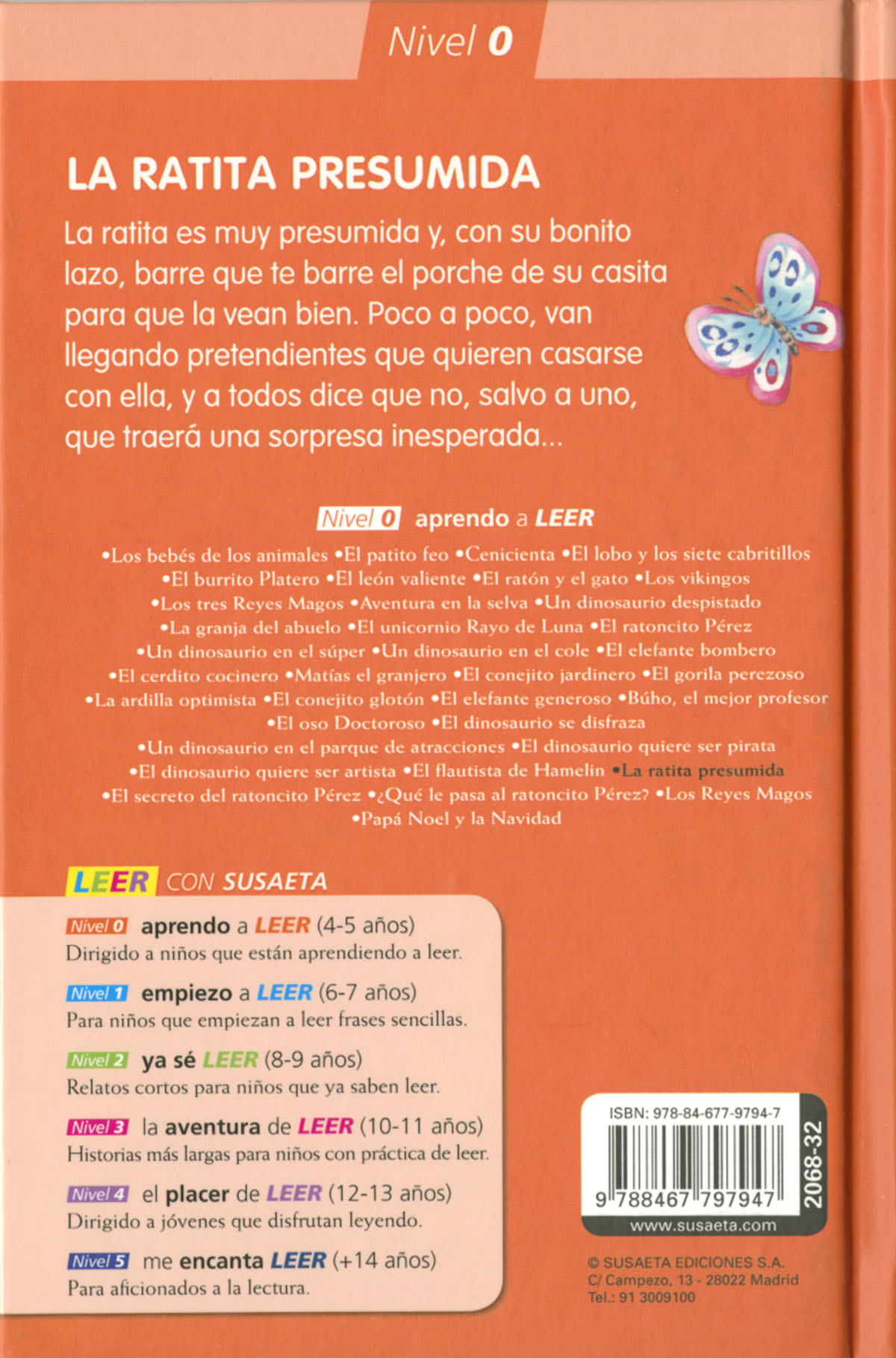 La ratita es muy presumida y, con su bonito lazo, barre que te barre el porche de su casita para que la vean bien. Poco a poco, van llegando pretendientes que quieren casarse con ella, y a todos dice que no, salvo a uno, que traerá una sorpresa inesperada... Una simpática adaptación para los más pequeños de este encantador cuento.