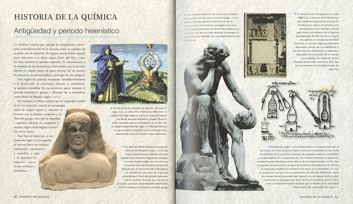 En este libro se describen los 98 elementos presentes en la naturaleza, a los cuales se añaden los creados artificialmente, hasta el número de 118. El volumen incluye una historia de los hechos más destacados de la química, la búsqueda de los elementos y la descripción de las moléculas, además de un apéndice con la cronología de los descubrimientos y los premios Nobel de Química.
