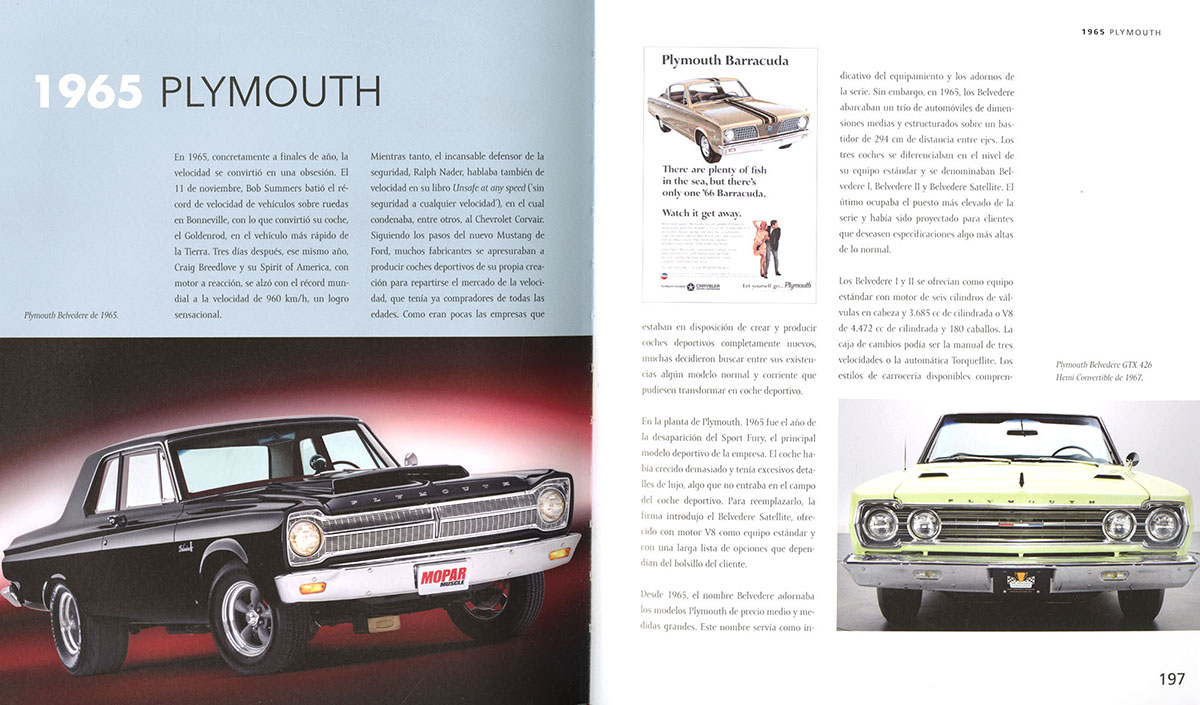 No hay otra nación en el mundo donde el automóvil haya llegado a formar parte de la vida cotidiana como ocurrió en los Estados Unidos en los años dorados de la automoción. De acuerdo con aquella manera de vivir, el automóvil reflejaba los sueños, las necesidades y los deseos de los norteamericanos. En este libro, queremos captar el verdadero espíritu de aquellos tiempos, materializado en los diseños de los automóviles. En él se incluyen los modelos clásicos de renombre, algunos éxitos brillantes y lamentables fracasos, marcas clásicas y extrañas rarezas: Airflow, Zephyr, Mercury, Corvette, Sting Ray, Mustang, Firebird, y muchos más. Le invitamos a un interesante viaje visual por la estética de aquellos años, una auténtica corriente de creatividad explosiva que difícilmente volverá a repetirse.