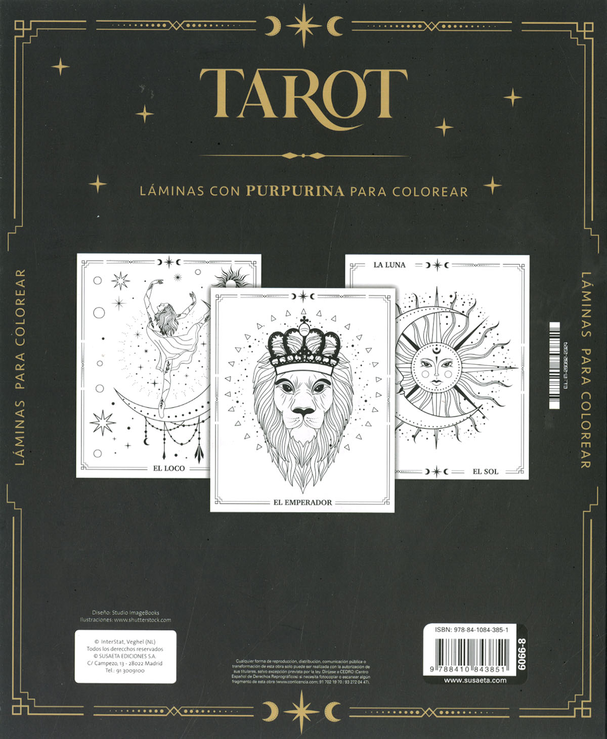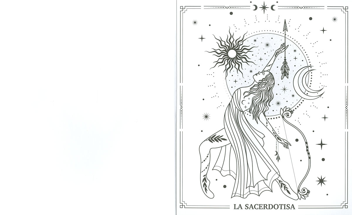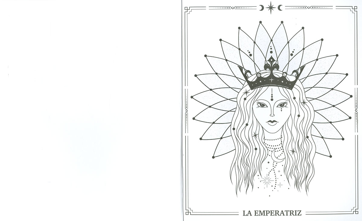 Libro con 20 láminas para colorear, decoradas con brillo de purpurina para conseguir un efecto más llamativo. ¡Entretenimiento y horas de relajación con los arcanos mayores del Tarot!