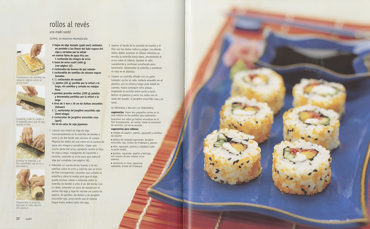 Este libro ofrece al lector un gran número de recetas de cocina japonesa, con todos los pasos necesarios, asà como sugerencias y fotografÃas de las recetas a todo color. Con una pequeña introducción a Japón y su gastronomÃa, pasando por platos de arroz sushi, sashimi, sopas, arroz y pasta, tofu y huevos, carne, ave, pescados y marisco, verduras y ensalada, e incluso un útil glosario con ingredientes que pueden resultar desconocidos para el lector. |