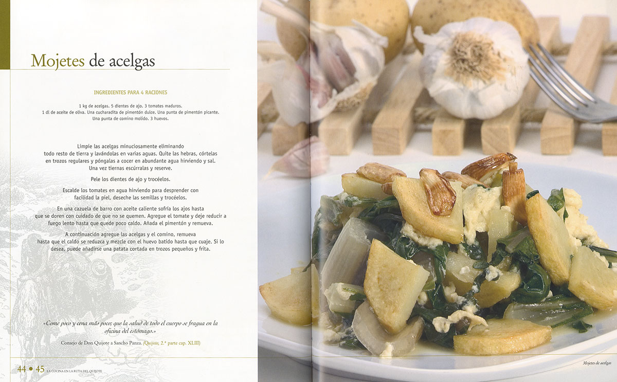 Cervantes recoge en su novela un extenso recetario de la cocina manchega. De acuerdo con la máxima de don Quijote de que "el bienestar del espíritu se fragua en las oficinas del estómago", la obra de Cervantes está trufada de sabrosas incursiones en la cocina de la época y salpicada de descripciones de las ventas y posadas donde se daban cita personajes diversos. Disfrute de una verdadera comida cervantina con el popular tiznao, la caldereta, los duelos y quebrantos, las migas o los gazpachos manchegos.