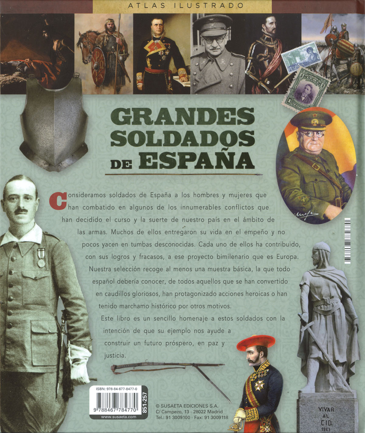 La lucha de muchos hombres y mujeres ha decidido el curso y la suerte de España en el ámbito de las armas. Cada uno de ellos ha contribuido, con sus logros y fracasos, a labrar nuestro país. Este libro recoge al menos una muestra, la que todo español debería conocer, de aquellos que, siendo o no profesionales de la milicia, se han convertido en caudillos gloriosos, han protagonizado acciones heroicas o han tenido una influencia histórica por otros motivos.