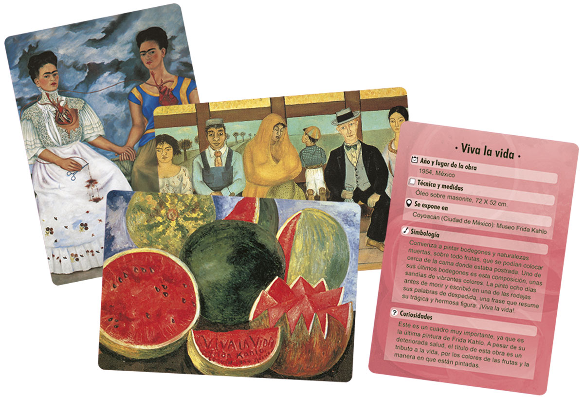 Esta caja, que incluye un libro y 40 fichas, es una fantástica manera de descubrir la inmensa obra de Frida Kahlo. A través del libro, en el que se traza una semblanza biográfica de la pintora mexicana, con ilustraciones de Acacio Puig, y las 40 fichas que describen otras tantas obras, los lectores van a disfrutar de la belleza que encierran sus pinturas y conocer las historias que están detrás de ellas, así como su simbología.