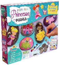 Esta caja contiene todo lo que necesitas para pintar en piedra un mundo de princesas con tus diseños favoritos: piedras, botes de pintura, un pincel, purpurina... Además, en el libro encontrarás actividades entretenidas para divertirte con tus amigos. ¡Un completo kit para sacarle partido a tu creatividad!