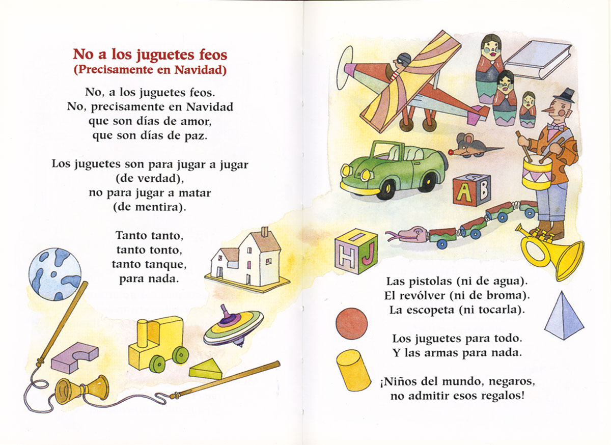 Gloria Fuertes fue siempre una activista por la paz. Desde que la guerra le mató la inocencia (A los nueve años me pilló un carro / y a los catorce me pilló la guerra) y a su novio, fue siempre una defensora activa de la paz (Quise ir a la guerra, para pararla, /pero me detuvieron a mitad del camino). Prueba de ello es esta antología de poemas sobre las guerras y la paz, una verdadera proclama, que incluye su célebre composición en apoyo de la paz (Solo tres letras), que se repite en conmemoraciones, asambleas y reuniones pacifistas.
