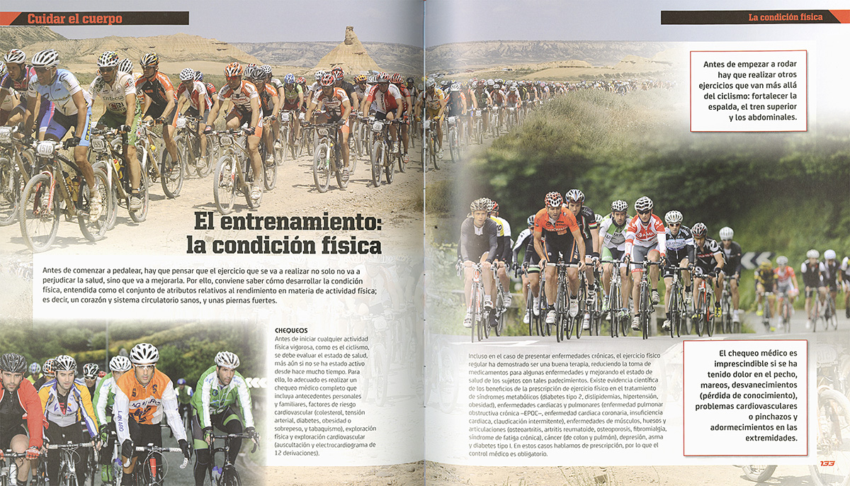 El mundo de la bicicleta es cada vez más amplio y tecnológico, y en él hay sitio para cada ciclista. Para algunos es un medio de transporte; para otros, una forma de hacer deporte; hay quien la utiliza para hacer turismo? Y, hoy en día, existe una bici adecuada para cada uso. Este libro está pensado para todos los aficionados: presenta los diferentes tipos de bici, ofrece consejos, propone entrenamientos y enseña a mantener la bicicleta.