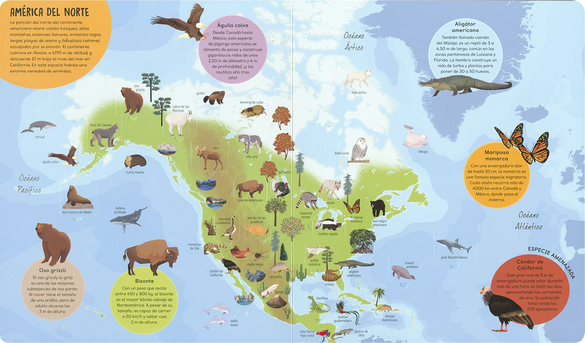 He aquí un atlas del mundo animal con el que descubrir a nuestros más queridos vecinos. ¿Los conoces? Desde los gélidos casquetes polares hasta los desiertos más tórridos, averigua qué animales habitan en cada lugar del mundo, e identifícalos en las 500 imágenes ilustradas de este libro. ¡Contiene solapas!