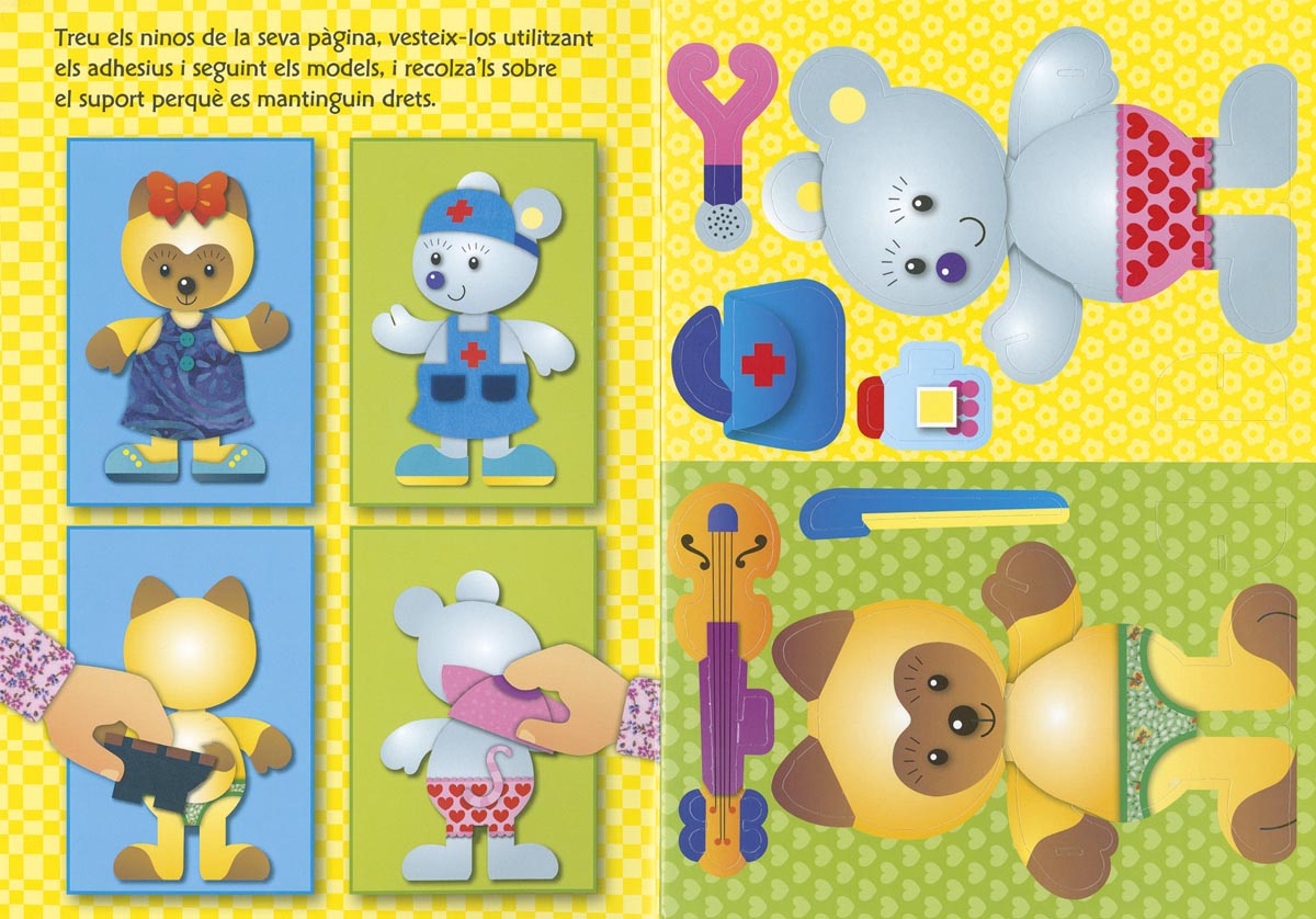 Enquadernació:  Cartolina plastificada, interior amb adhesius i ninots encunyats