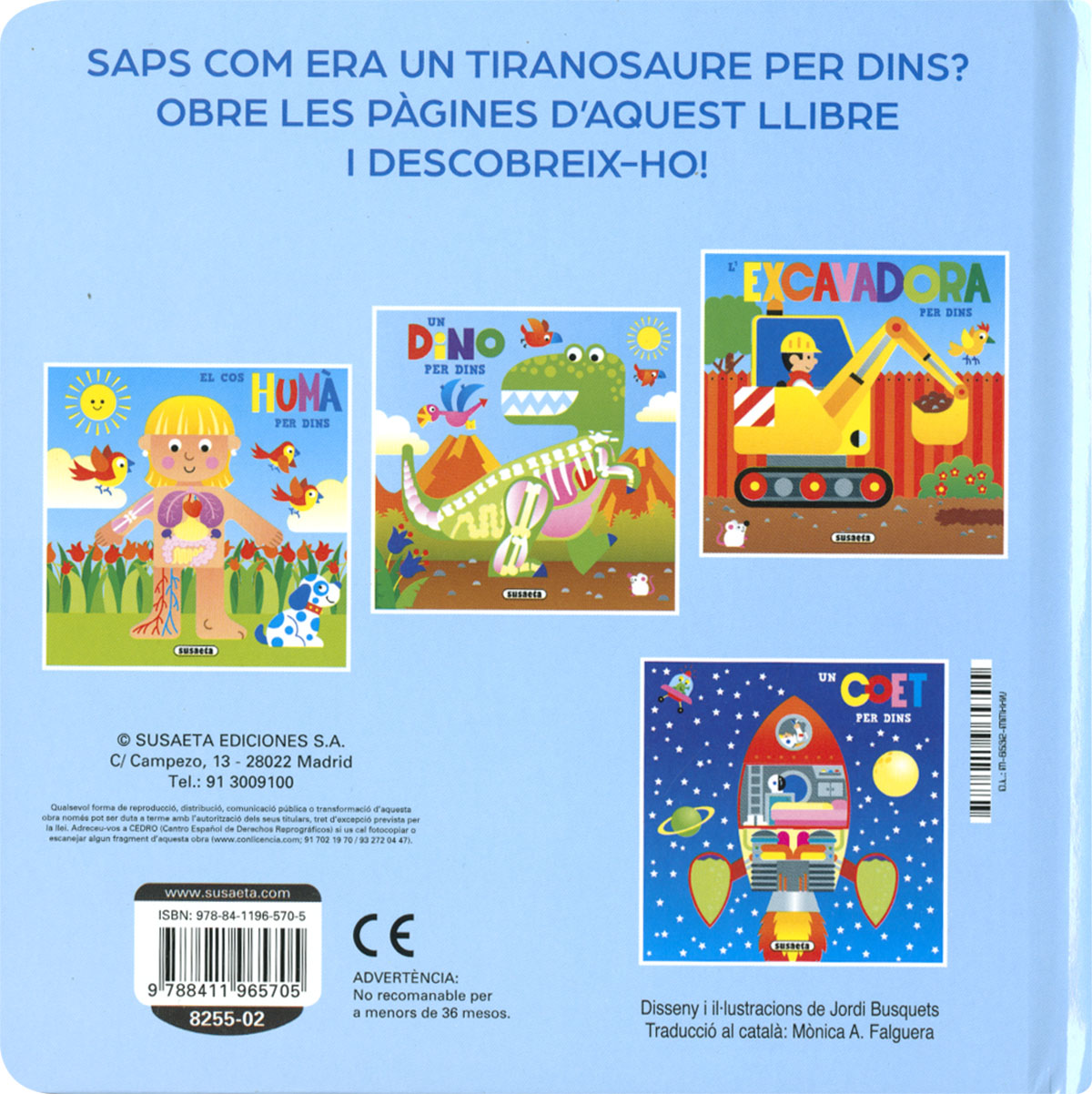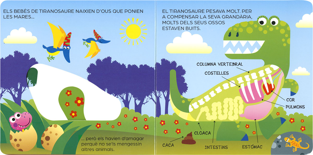 T'agrada aprendre? En aquest simpàtic llibre de cartró encunyat descobriràs, pàgina a pàgina, l'interior d'un tiranosaure i moltes coses més. Obre'l i diverteix-te!