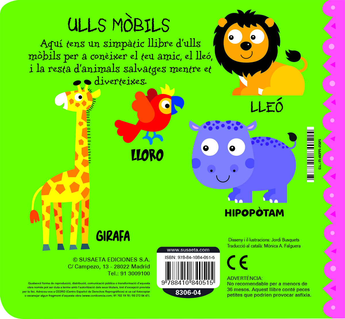 Enquadernació:  Cartón plastificado brillo y troquelado con ojos móviles