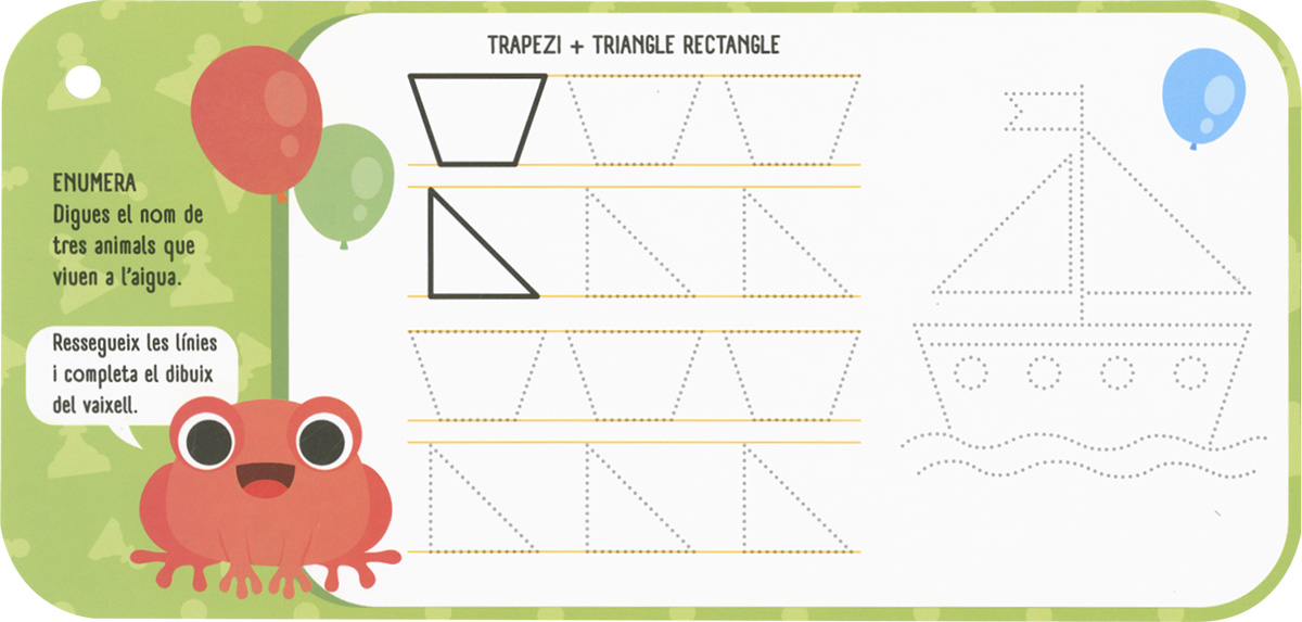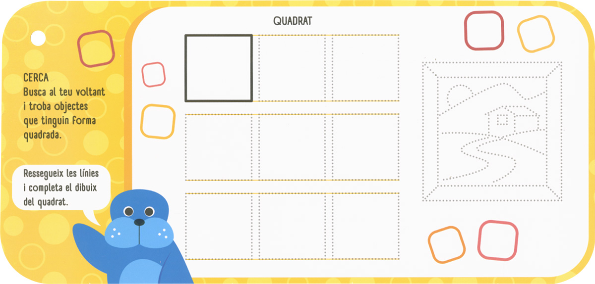 Una manera divertida d?aprendre, descobrir i practicar jugant. La col·lecció DIVERTIPETITS està pensada perquè els més petits de casa s?entretinguin i es diverteixin mentre desenvolupen la seva capacitat d?associació, memòria, coordinació i imaginació. En aquest títol hi trobaràs activitats per observar, identificar i practicar formes, a més de jocs i passatemps relacionats amb les formes per compatir i divertir-te. No et preocupis si alguna cosa no et surt a la primera; amb el retolador esborrable ho podràs escriure i esborrar tantes vegades com vulguis.