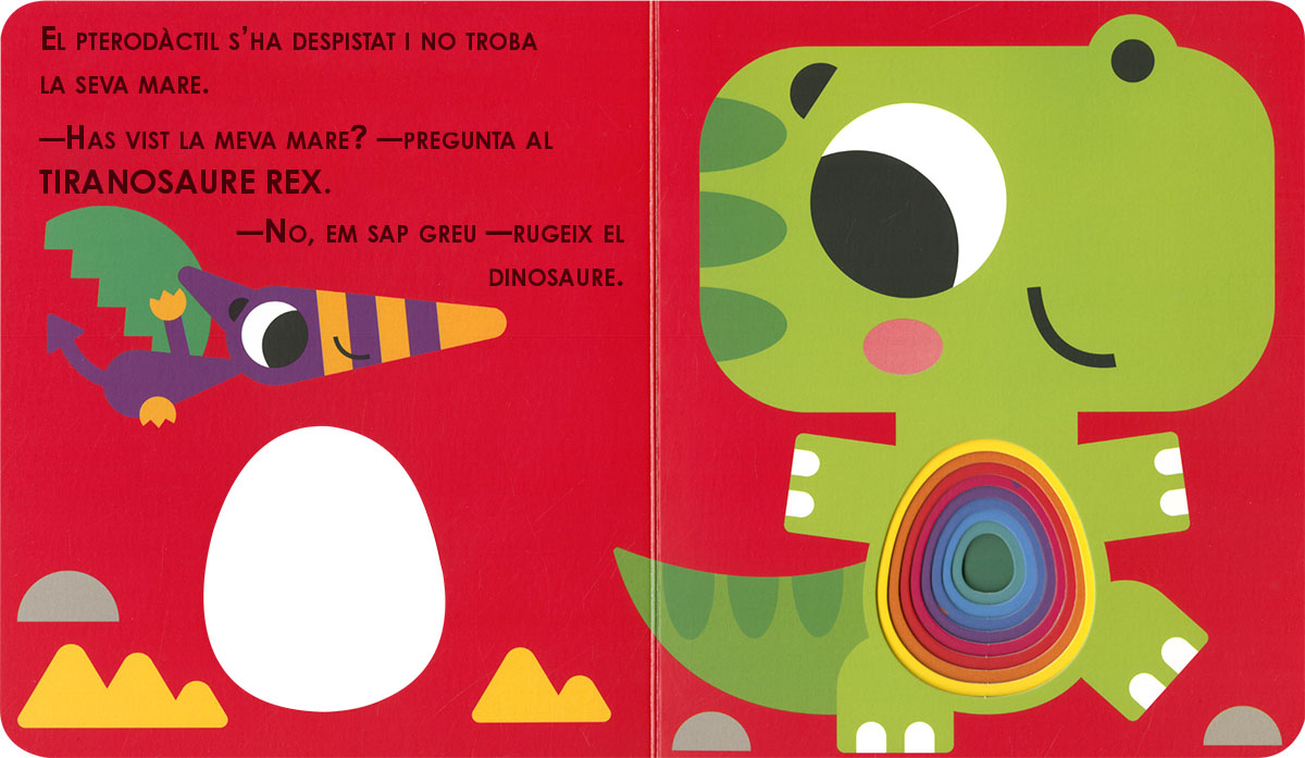 El petit pterodàctil s?ha perdut i no troba la seva mare. La trobarà? Descobreix-ho amb aquest llibre de cartró de pàgines encunyades i acolorides il·lustracions, ideal per als més petits i petites de la casa.
