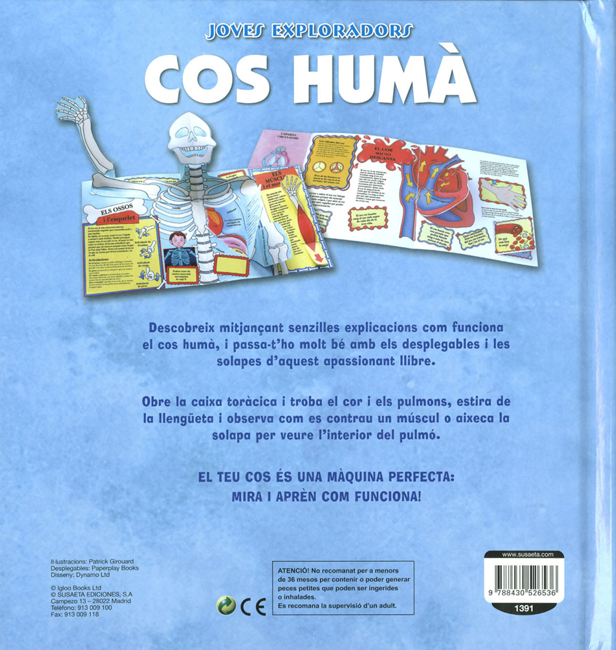 Descobreix mitjançant senzilles explicacions com funciona el cos humà, i passa-t´ho molt bé amb els desplegables i les solapes d´aquest apassionant llibre. Obre la caixa toràcica i troba el cor i els pulmons, estira la llengüeta i observa com es contrau un múscul o aixeca la solapa per veure l´interior del pulmó.